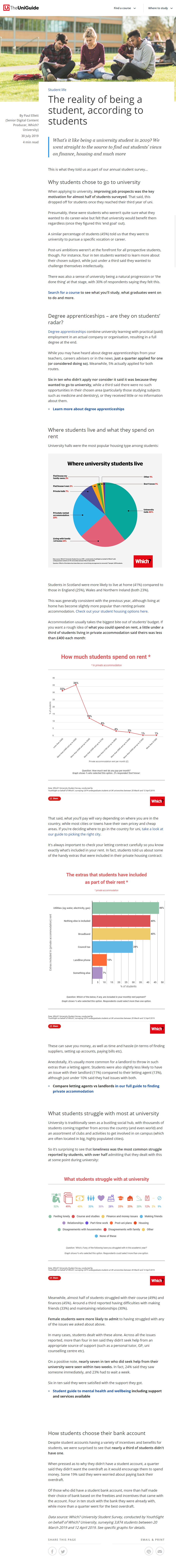 An editorial guide summarising the results of a student survey, focusing on a few key themes such as student struggles, accommodation and bank accounts.
