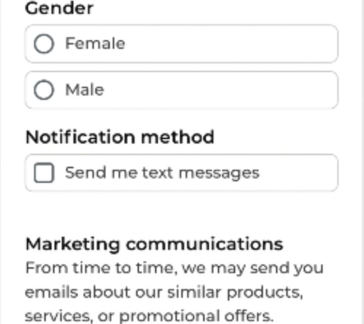It was unclear what these notifications related to based on the previous copy. For example, a user might confuse these with marketing communications. The new subheading copy makes it clear from the outset that we’re referring to order updates and that these are optional. I also reassured users that they will still get these via email but they wouldn’t include any personal information.
